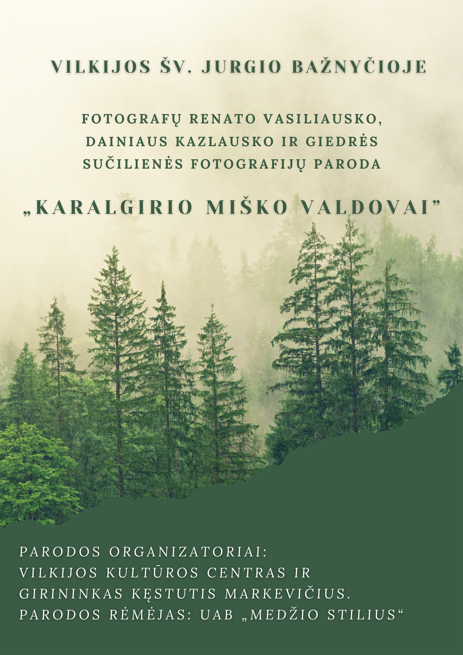 Kviečiame į unikalią fotografijos parodą, kurioje trys talentingi fotografai – Renatas Vasiliauskas, Dainius Kazlauskas ir Giedrė Sučilienė – atskleidžia Karalgirio miško paslaptis ir grožį.