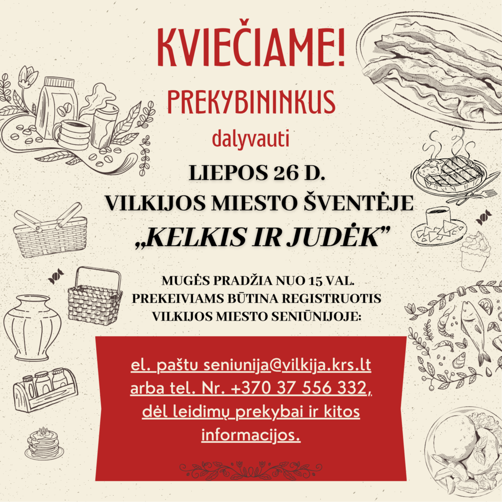 Liepos 26 d. kviečiame dalyvauti Vilkijos miesto šventėje ir prekiauti mugėje!